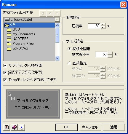 出力先や圧縮率、リサイズの設定を行う事が出来ます。